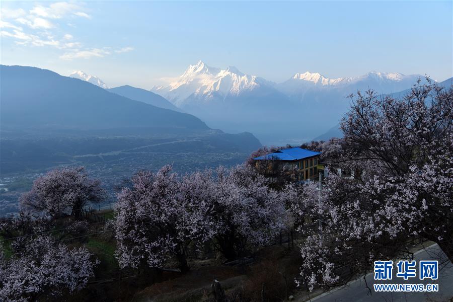 南迦巴瓦峰下盛開的桃花(4月1日攝)。新華社記者侯捷攝