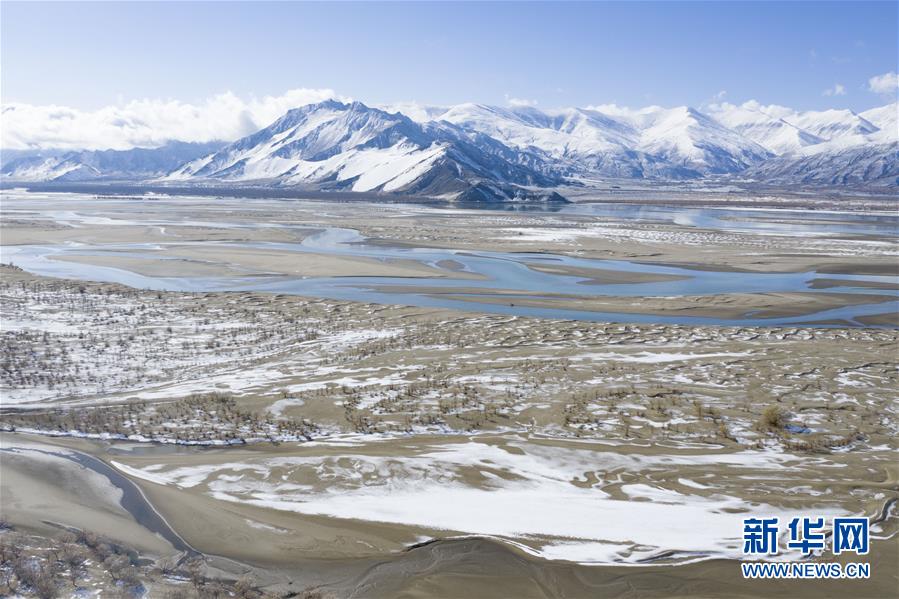 這是3月24日拍攝的雅魯藏布江雪景(無人機照片)。新華社記者晉美多吉攝