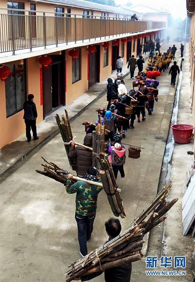 廣西融水苗族自治縣四榮鄉(xiāng)榮地村的侗族村民在喬遷新居(2018年1月26日攝)。新華社記者張愛林攝