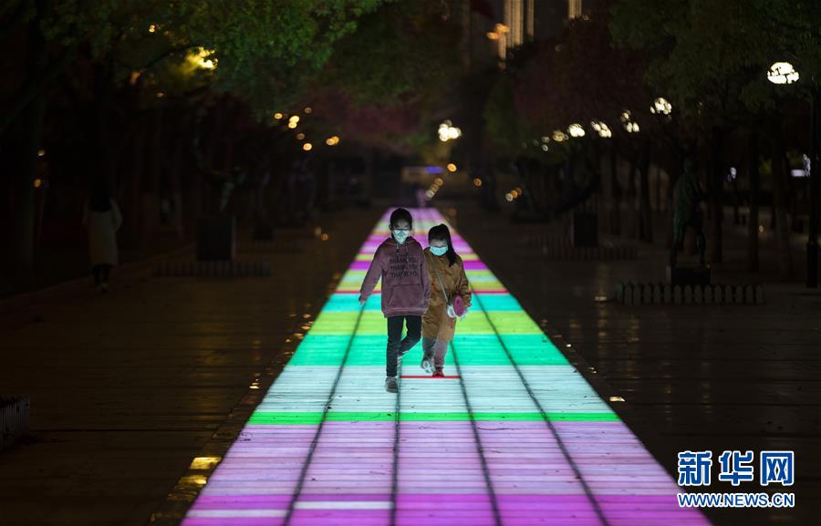 4月1日,在武漢天地廣場,幾個小朋友在玩耍。新華社記者費(fèi)茂華攝