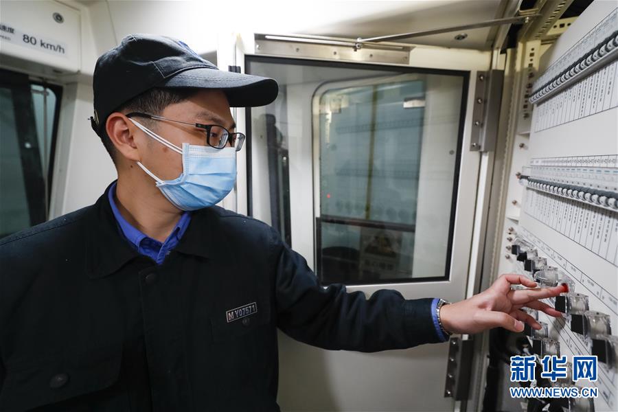 3月23日,武漢地鐵運(yùn)營(yíng)有限公司車輛二部檢修一車間檢修員萬交林在地鐵列車上緩解所有制動(dòng),并檢查車輛制動(dòng)相關(guān)功能。新華社記者沈伯韓攝