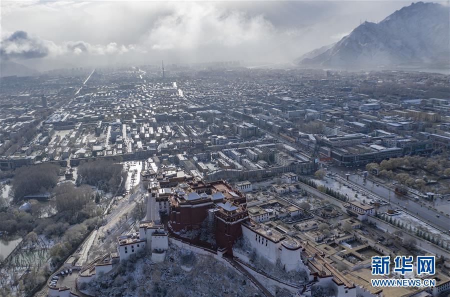 當(dāng)日,西藏拉薩迎來降雪,高原古城銀裝素裹,美如畫卷。新華社記者普布扎西攝
