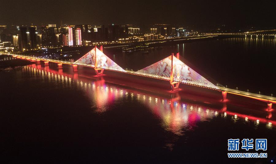 4月8日零時(shí)起,武漢市正式解除離漢離鄂通道管控措施,全市景觀照明開啟(無人機(jī)拍攝)。新華社記者程敏攝
