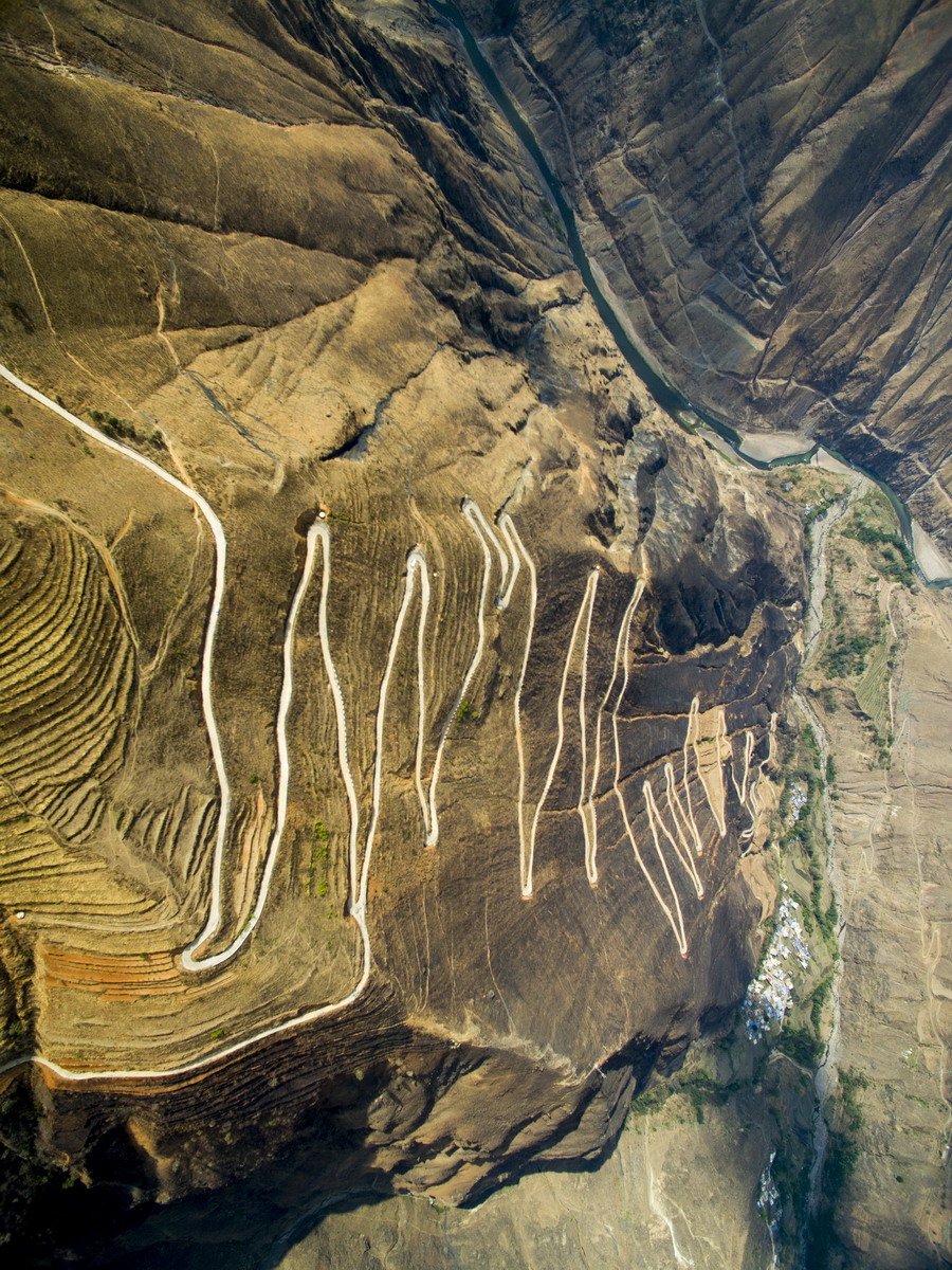 這是“怒江72拐”,該處位于西藏自治區(qū)昌都市八宿縣境內,是川藏線上一段艱險與美景并存的山路(10月23日無人機拍攝)。全長2000多公里的川藏公路,從成都開始,一路向西到終點拉薩,在橫斷山脈、喜馬拉雅山脈和念青唐古拉山脈間蜿蜒盤旋,因海拔落差大,彎道眾多,形成天路奇觀。川藏公路1954年12月25日通車,65年來,國家對川藏公路進行了大規(guī)模改造升級,建設了眾多橋梁和隧道,行車條件得到明顯改善。新華社記者江宏景攝