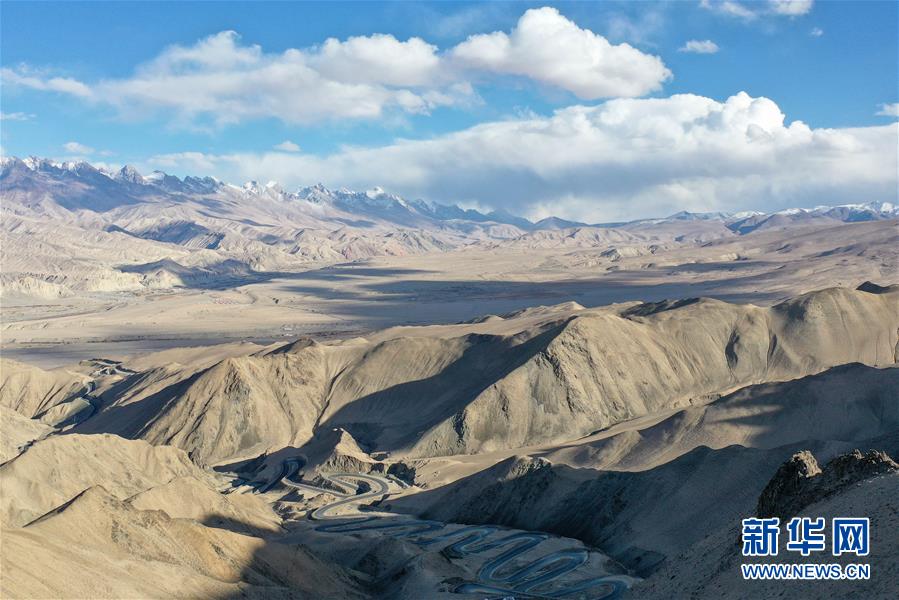 這是10月20日無人機拍攝的新疆塔什庫爾干塔吉克自治縣吾格亞提盤山公路。在中國西陲的新疆帕米爾高原,塔什庫爾干塔吉克自治縣縣城到瓦恰鄉(xiāng)之間有條蜿蜒的盤山公路,海拔超4200米,全長36公里,最大落差近1000米,被當地人稱為“高原天路”。盤山公路彎曲盤旋的走勢與周邊雄渾壯麗的風光,共同構成一幅壯美畫卷。這條公路名為吾格亞提盤山公路,2019年7月投入使用,便利了山區(qū)農牧民的出行。新華社記者丁磊攝