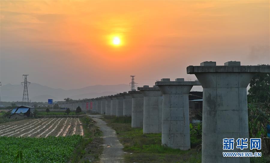 位于西雙版納傣族自治州景洪市的橄欖壩特大橋在夕陽(yáng)下格外美麗(4月12日攝)。新華社記者秦晴攝
