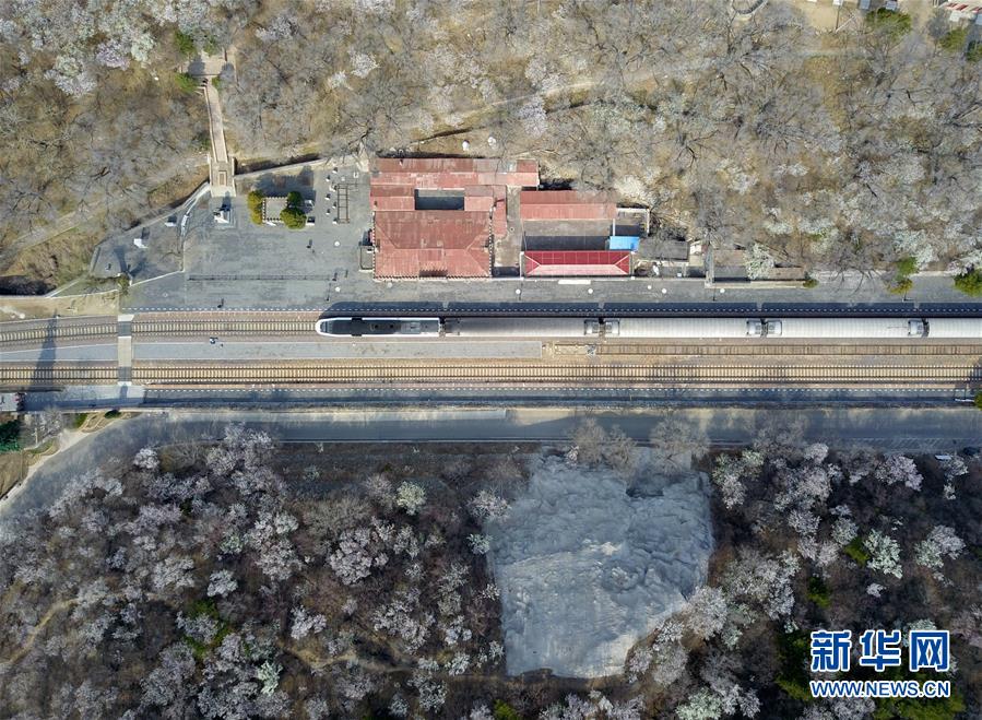 4月8日,北京青龍橋火車站附近春花盛開(無人機照片)。 當日,北京青龍橋火車站附近,春花綻放,為這座百年火車站增添濃濃春意。 新華社記者張晨霖攝