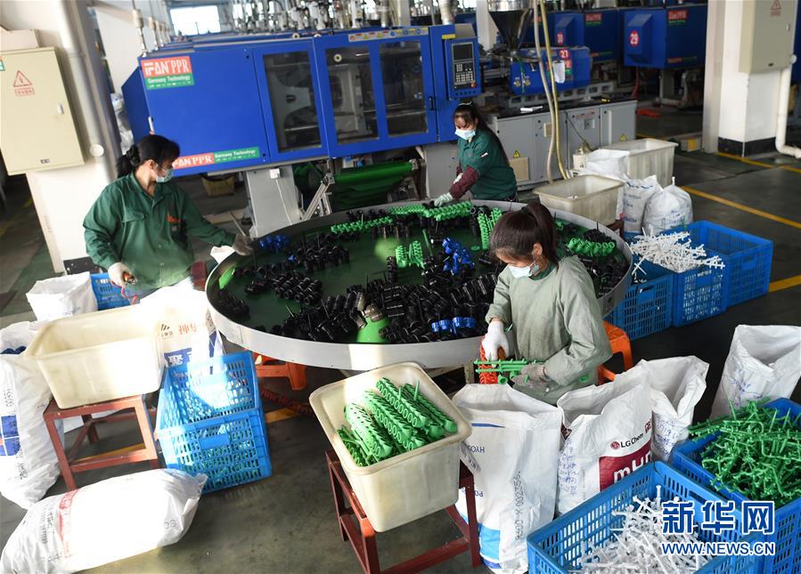 4月13日,員工在位于店口鎮(zhèn)的諸暨市風帆管業(yè)有限公司注塑車間分揀自動化生產(chǎn)線上的管件。新華社記者韓傳號攝