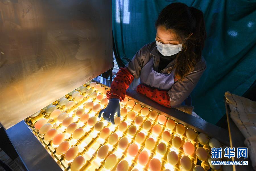 江蘇高郵鴨集團(tuán)的工作人員在生產(chǎn)線上對(duì)鴨蛋進(jìn)行光檢作業(yè)(4月15日攝)?!案哙]鴨蛋”是江蘇高郵的特色農(nóng)業(yè)名片。近年來(lái),當(dāng)?shù)卦诹挤N繁育、生態(tài)養(yǎng)殖、產(chǎn)品加工等方面加大力度,推動(dòng)高郵鴨蛋品牌化建設(shè),讓小鴨蛋成為帶動(dòng)農(nóng)戶致富的大產(chǎn)業(yè)。2019年,高郵市共計(jì)生產(chǎn)熟制鴨蛋產(chǎn)品近11.2億枚,年產(chǎn)值近17.68億元。新華社記者李博攝