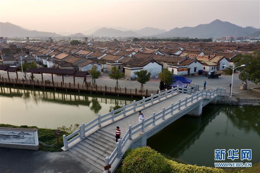 11月14日,行人經(jīng)過(guò)埭美村一座石橋(無(wú)人機(jī)拍攝)。新華社記者姜克紅攝