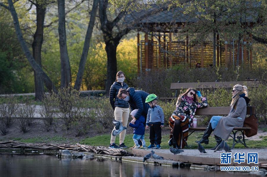 4月20日,人們在波蘭華沙的克拉辛斯基公園里游玩。新華社記者周楠攝