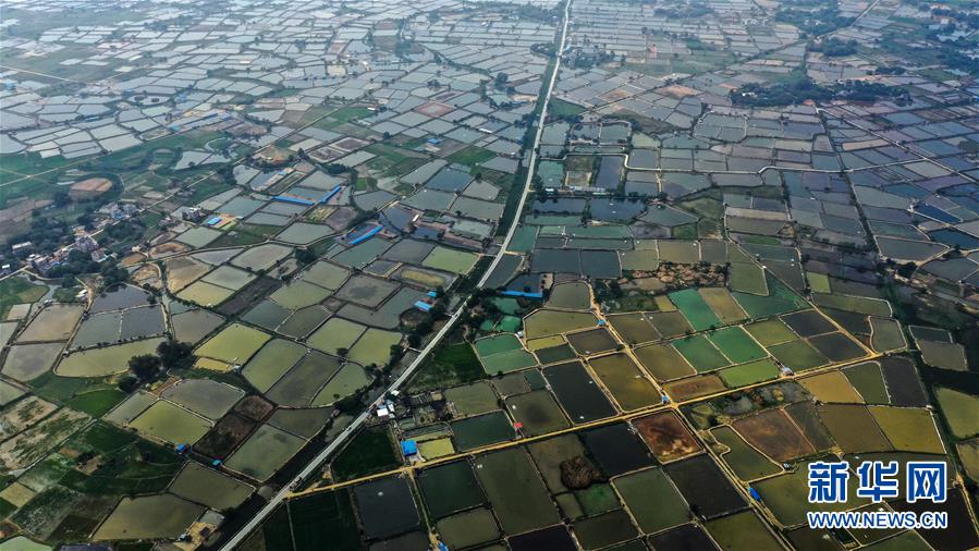 新華社照片,合浦(廣西),2020年4月21日鳥瞰廣西合浦春色這是4月21日拍攝的合浦縣境內(nèi)的春日風(fēng)光(無人機(jī)照片)。暮春時節(jié),從空中俯瞰廣西北海市合浦縣大地,河流、稻田、蝦塘、道路、村莊星羅棋布、色彩斑斕,美不勝收。新華社記者張愛林?jǐn)z
