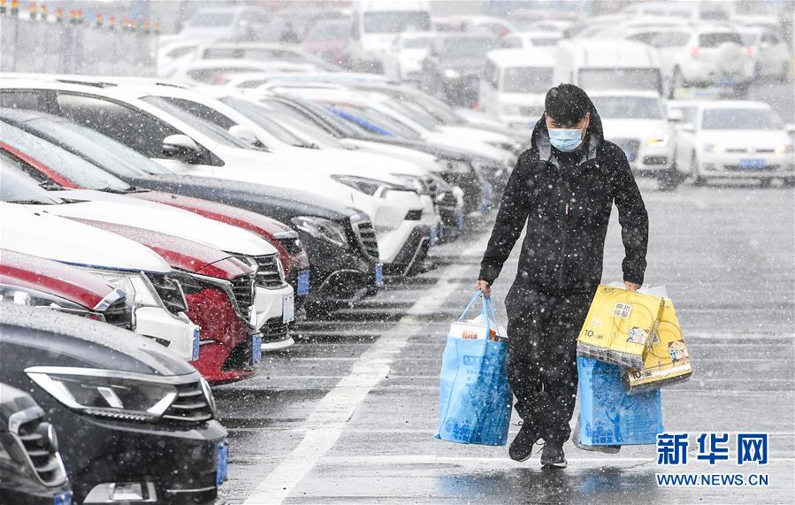 4月21日,長春市民冒雪出行。當(dāng)日,吉林省多地迎來降雪天氣。新華社記者許暢攝