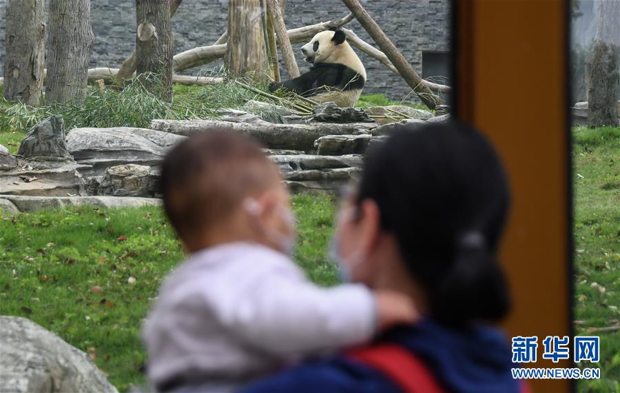 4月22日,大熊貓迎來參觀的游客。當(dāng)日,在嚴(yán)格落實疫情防控措施的前提下,武漢動物園有序恢復(fù)開放。新華社記者程敏攝