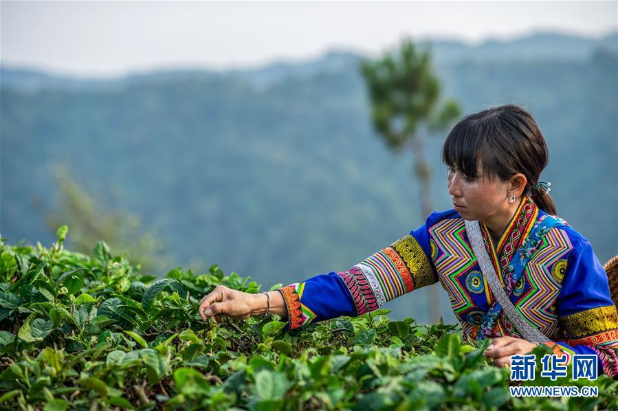 4月11日,在云南省勐??h布朗山鄉(xiāng),娜四在采茶。新華社記者胡超攝