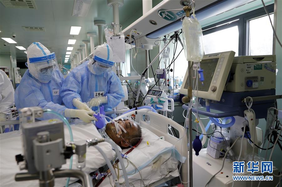 4月24日,在位于武漢的華中科技大學(xué)同濟(jì)醫(yī)學(xué)院附屬協(xié)和醫(yī)院西院,醫(yī)務(wù)人員何玨(左)和馬夢(mèng)琳在護(hù)理核酸檢測(cè)結(jié)果轉(zhuǎn)陰的新冠肺炎病人。新華社記者沈伯韓攝