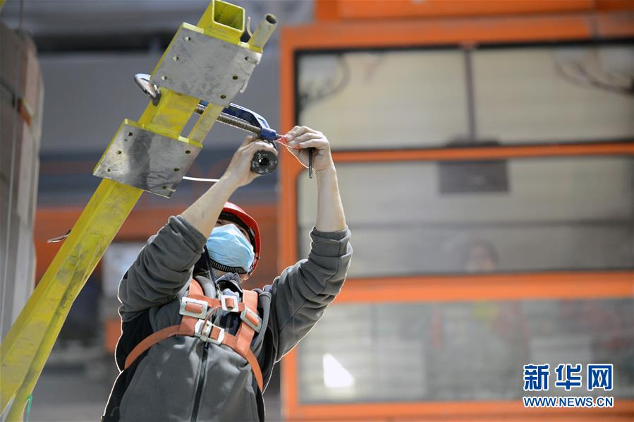 4月24日,一名工人在施工現(xiàn)場(chǎng)安裝機(jī)組轉(zhuǎn)子磁極引線和阻尼環(huán)。新華社記者韓曉雨攝