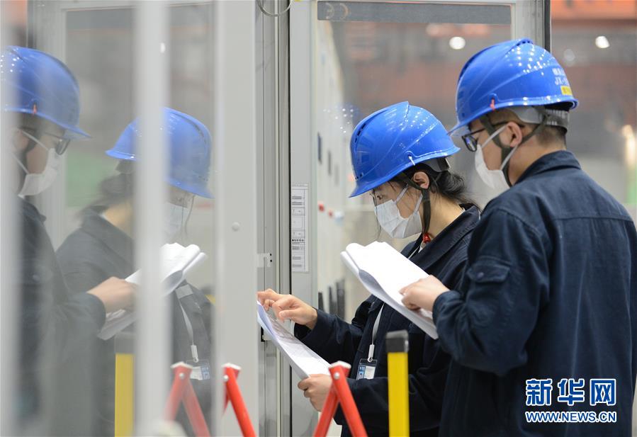 4月24日,技術人員在施工現(xiàn)場進行設備檢查。新華社記者韓曉雨攝