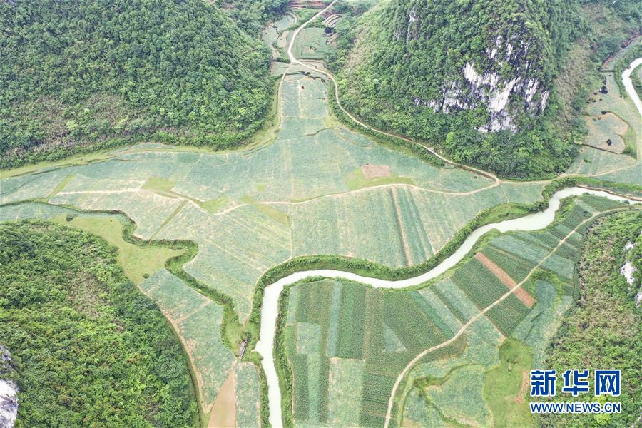 圖為廣西隆安縣南圩鎮(zhèn)田園景色(4月23日攝,無人機照片)。