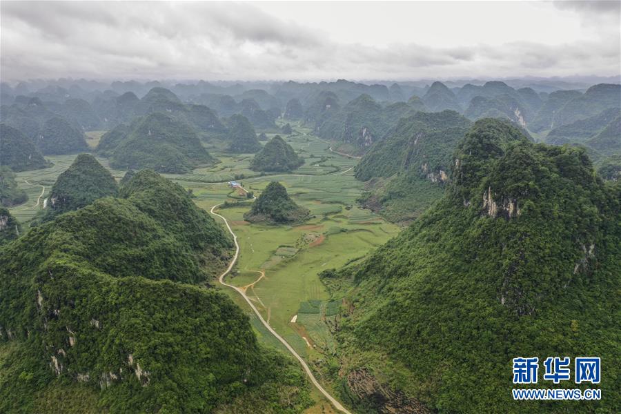 廣西隆安縣南圩鎮(zhèn)田園景色(4月23日攝,無(wú)人機(jī)照片)。新華社記者曹祎銘攝