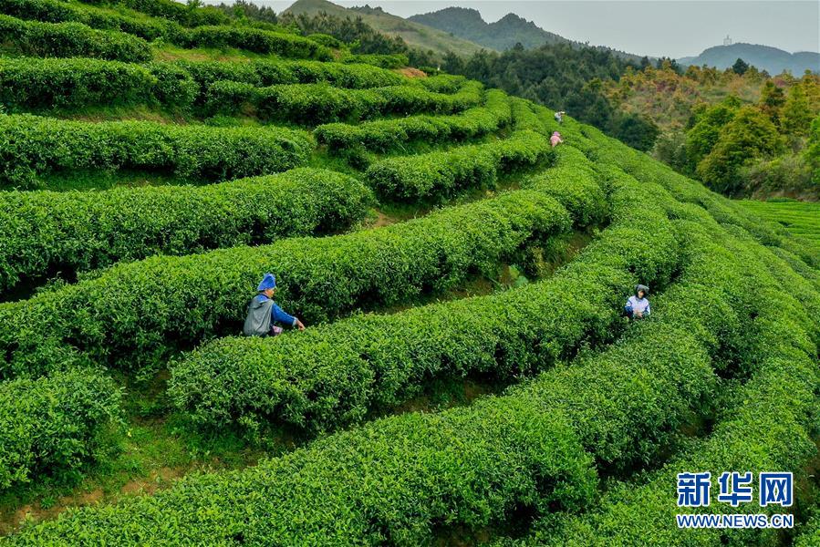 4月25日,茶農(nóng)在“扶貧茶園”內(nèi)采茶(無人機(jī)照片)。谷雨過后,在貴州省黔東南苗族侗族自治州丹寨縣“扶貧茶園”,茶農(nóng)搶抓農(nóng)時趕制春茶。丹寨縣創(chuàng)新產(chǎn)業(yè)扶貧模式,鼓勵社會公眾線上認(rèn)領(lǐng)茶園,再由茶園聘請當(dāng)?shù)刎毨魟?wù)工,為貧困戶創(chuàng)造茶園管理、采茶、制茶等就業(yè)機(jī)會,幫助貧困戶增收。今年以來,“扶貧茶園”已接受線上預(yù)訂600余畝,給當(dāng)?shù)?00余名村民提供了就業(yè)機(jī)會。新華社記者歐東衢攝