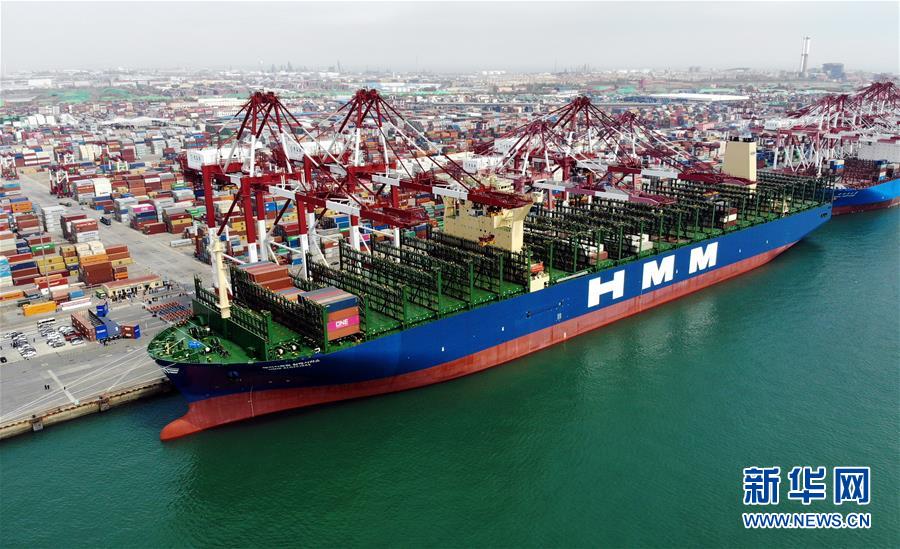世界最大集裝箱船首航青島港 甲板面積相當于3.5個足球場