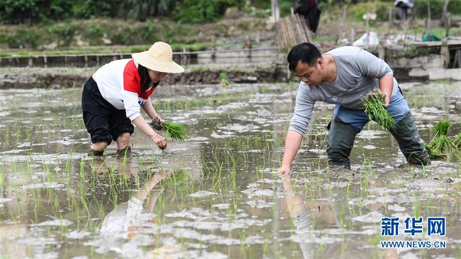 廣西三江侗族自治縣八江鎮(zhèn)平善村村民栽種早稻(4月25日攝)。目前,廣西柳州市三江侗族自治縣群眾抓住時令,搶種早稻,培育靈芝和果蔬等經(jīng)濟作物,全力發(fā)展生產(chǎn),決戰(zhàn)脫貧攻堅。三江侗族自治縣地處滇黔桂石漠化片區(qū),是國家扶貧開發(fā)工作重點縣。新華社記者張愛林攝
