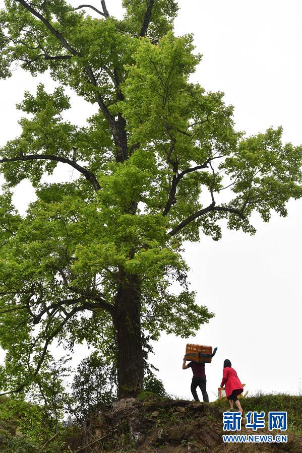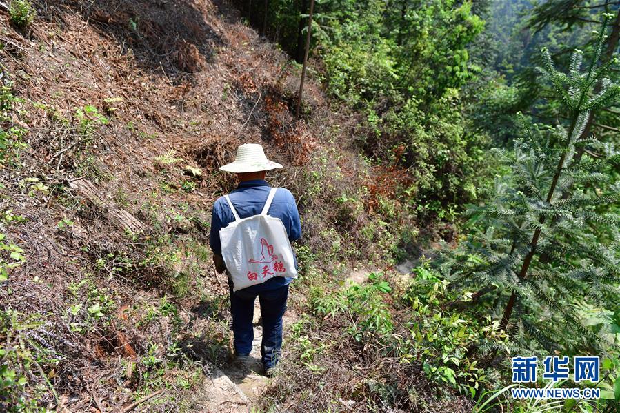 李義成走在山間小路上,準(zhǔn)備了解群眾春耕生產(chǎn)情況(2019年4月23日攝)。新華社記者黃孝邦攝