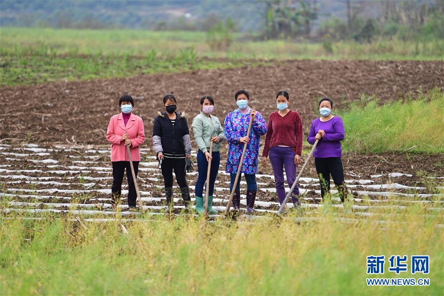 在廣西融水苗族自治縣永樂鎮(zhèn)毛潭村,38歲的歐意鳳(右三)和返鄉(xiāng)發(fā)展產(chǎn)業(yè)的婦女們(3月13日攝)。