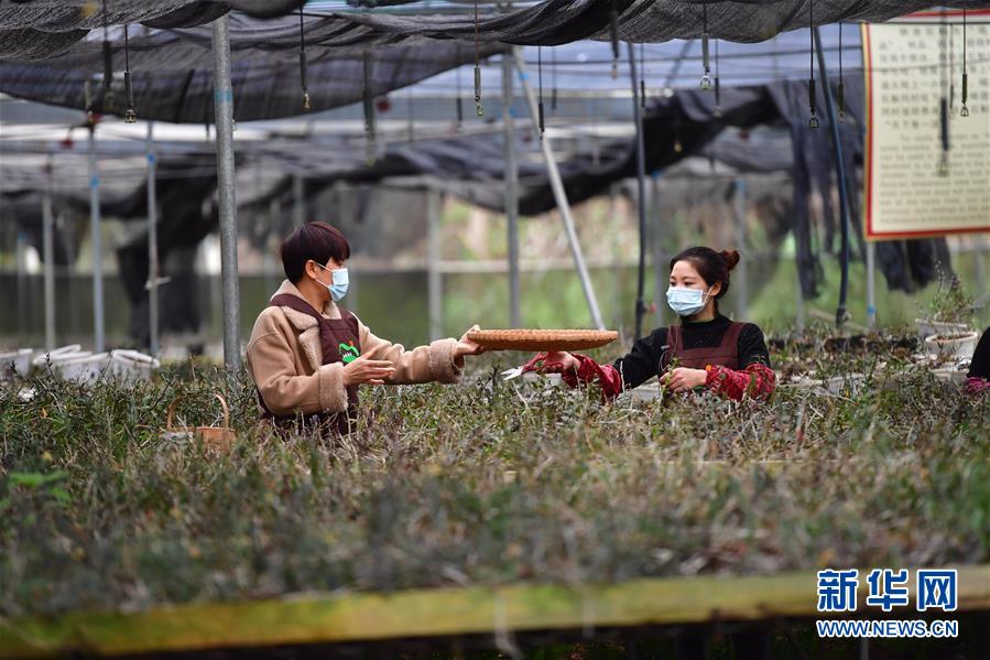在廣西融水苗族自治縣七彩農(nóng)場,梁壬梅(左)和脫貧戶何春瓊在采收石斛(3月13日攝)。