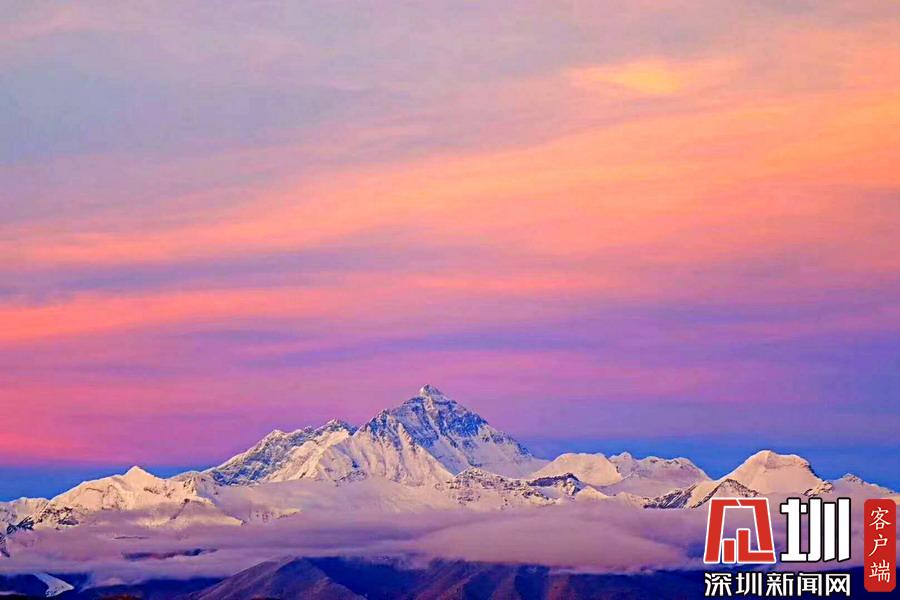 日出時分,朝霞映照珠峰(4月15日攝)。新華社記者孫非攝