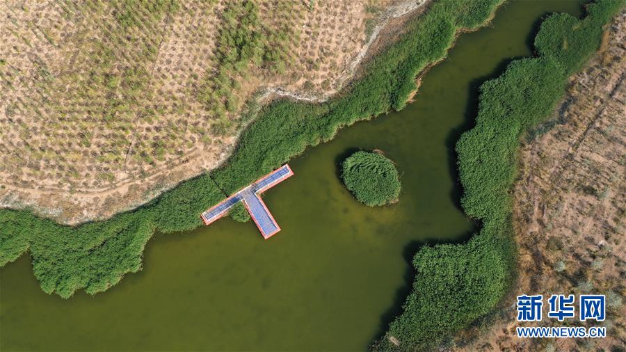 這是5月2日拍攝的寧夏天湖國家濕地公園(無人機照片)。寧夏天湖國家濕地公園位于寧夏中衛(wèi)市中寧縣長山頭農(nóng)場,公園總面積1791公頃,其中濕地面積1649公頃,是寧夏境內(nèi)原始自然資源保存最完整的濕地之一。濕地公園內(nèi)動植物資源十分豐富,被譽為黃土旱塬上的“明珠湖”。 新華社記者 王鵬 攝