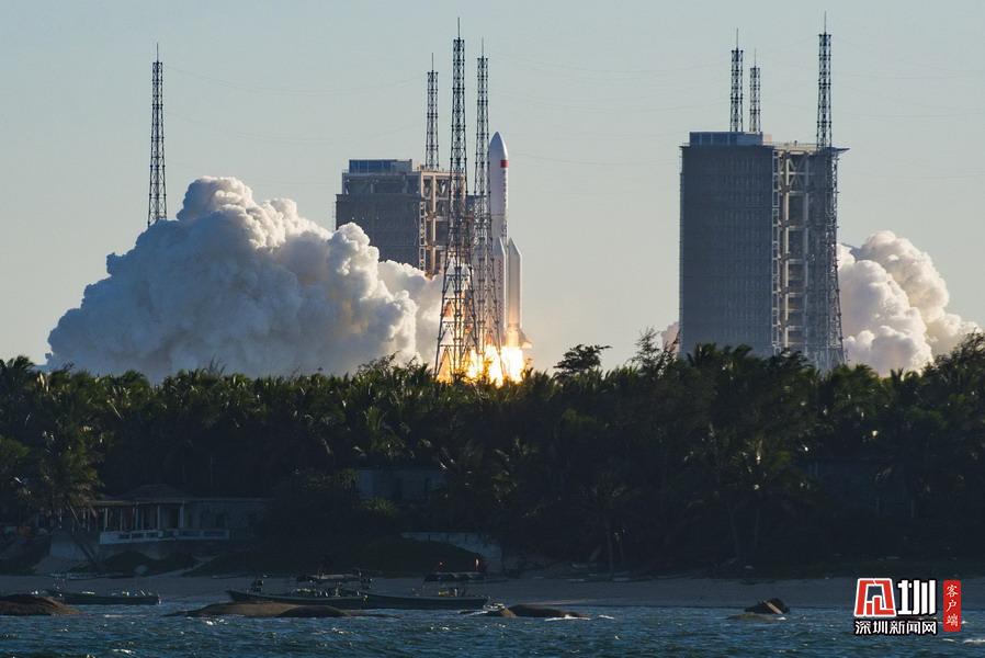 2020年5月5日18時(shí),長(zhǎng)征五號(hào)B運(yùn)載火箭在文昌發(fā)射場(chǎng)點(diǎn)火升空,這是在第一次程序轉(zhuǎn)彎后正常飛行。