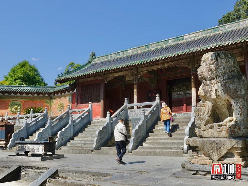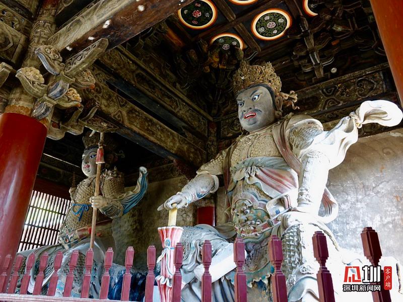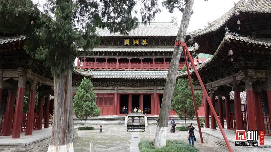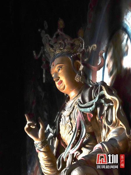 報恩寺布局結(jié)構(gòu)酷似北京紫禁城,被稱為“深山故宮”。寺內(nèi)古木參天,氣象森嚴,飛檐凌空,金碧輝煌。大悲殿中的用整根楠木雕成的千手千眼觀音像、華嚴藏中的轉(zhuǎn)輪經(jīng)藏和泥塑蟠龍,以及遍布全寺的彩繪壁畫,都是世間罕見的藝術(shù)珍品。李仁奇攝