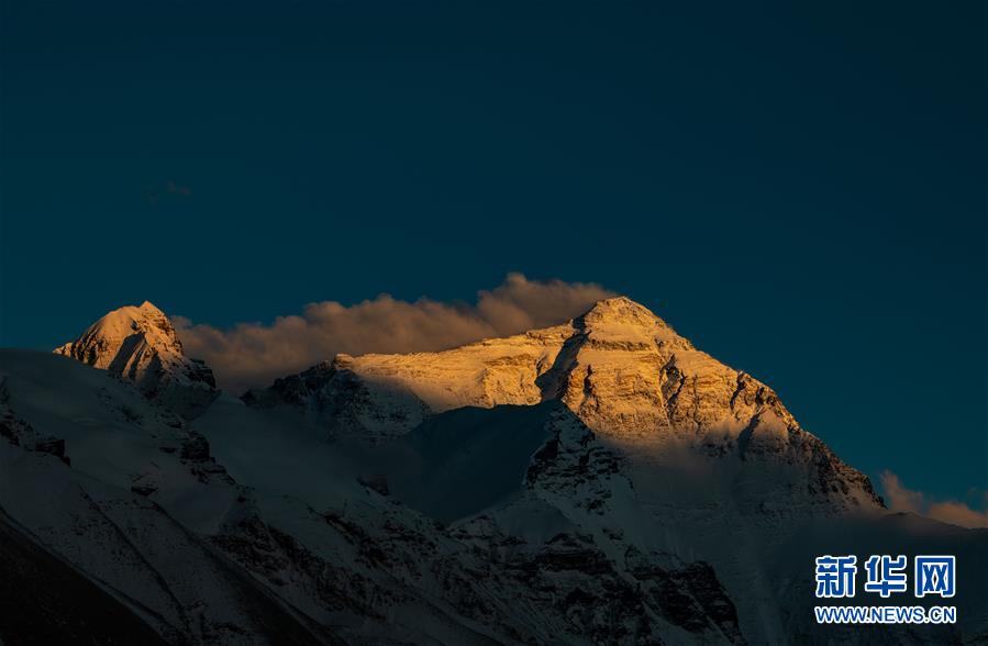 這是5月3日拍攝的夕陽下的珠峰。世界第一高峰珠穆朗瑪峰終年積雪,頂峰云霧繚繞,美不勝收。新華社記者晉美多吉攝