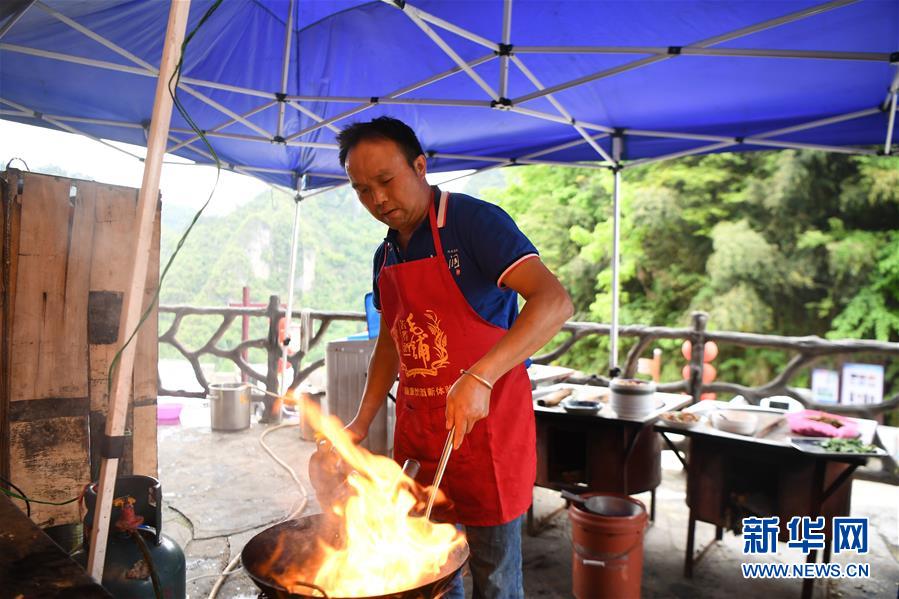 施六金在自家開的農(nóng)家樂為客人準備午餐(4月25日攝)。1973年出生于十八洞村的施六金,由于父親患病很早就放棄學業(yè)和母親扛起了家庭的重擔。為了生活,他還曾遠去東南亞打工。2015年,看到家鄉(xiāng)的變化,施六金回到村里開起了農(nóng)家樂,年度家庭人均純收入也從2014年的1715元增長到了2019年的35696元。2018年,施六金與心愛的人組建了家庭。今年初,施六金與愛人迎來了一個大胖小子。“做人做事要懂得回報和感恩。”施六金給剛出生的兒子取名施澤恩。新華社記者薛宇舸攝