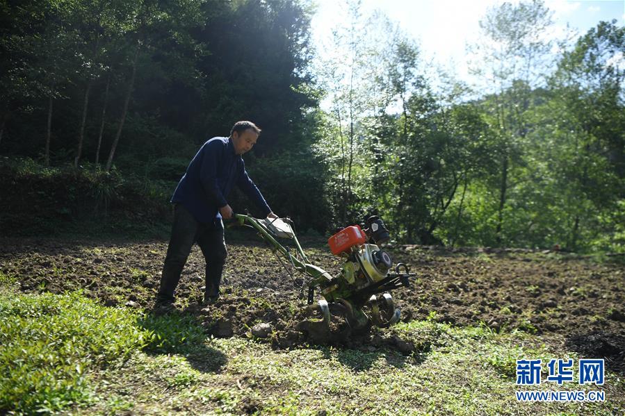 施六金在田間翻耕(4月24日攝)。1973年出生于十八洞村的施六金,由于父親患病很早就放棄學業(yè)和母親扛起了家庭的重擔。為了生活,他還曾遠去東南亞打工。2015年,看到家鄉(xiāng)的變化,施六金回到村里開起了農(nóng)家樂,年度家庭人均純收入也從2014年的1715元增長到了2019年的35696元。2018年,施六金與心愛的人組建了家庭。今年初,施六金與愛人迎來了一個大胖小子?!白鋈俗鍪乱没貓蠛透卸?。”施六金給剛出生的兒子取名施澤恩。新華社記者薛宇舸攝
