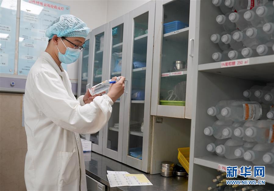 5月10日,在上海市普陀區(qū)中心醫(yī)院急診室,護(hù)士蔡杰君在準(zhǔn)備藥品。他曾在浦東國(guó)際機(jī)場(chǎng)“外防輸入”抗疫一線堅(jiān)守30天。新華社記者劉穎攝