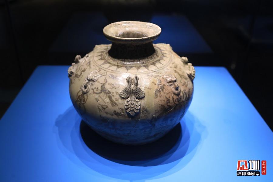 2020年5月10日?qǐng)?bào)道,近十年來最大規(guī)模三國文物展“三國志——文化主題特展”,正在中華世紀(jì)壇展出。圖為三國吳,褐彩神鳥瑞獸紋青瓷盤口壺,南京博物總館藏。