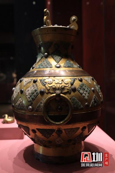 2020年5月10日報道,近十年來最大規(guī)模三國文物展“三國志——文化主題特展”,正在中華世紀壇展出。圖為滿城漢墓出土,鎏金銀乳釘紋銅壺。