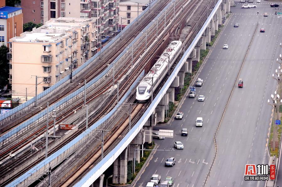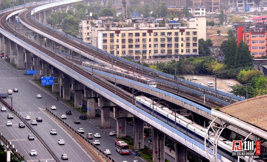 2020年5月11日,四川省成都市,犀浦站是全國首個(gè)鐵路與地鐵換乘車站。圖為動(dòng)車、地鐵同時(shí)運(yùn)行在線路上。