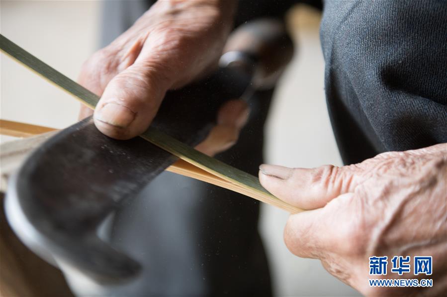 5月12日,浙江諸暨龍溪村的百歲老人蔡渭東在家中處理竹篾。浙江諸暨東和鄉(xiāng)龍溪村有一位102歲的老人蔡渭東,他從12歲開始拜師學(xué)藝,做了90年的篾匠,如今依然耳聰目明,每天堅持編織篾器。蔡渭東老人說他舍不得丟掉這份老手藝,也希望年輕人能傳承下去。新華社記者翁忻旸攝