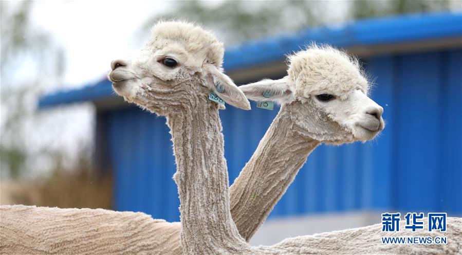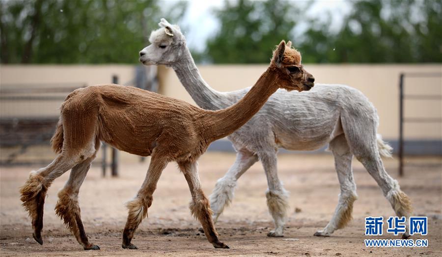 5月12日,剪下絨毛的羊駝在養(yǎng)殖基地的飼養(yǎng)舍里。新華社記者姚劍鋒攝