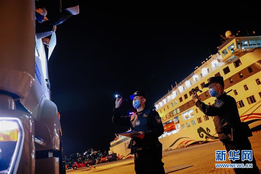 5月13日,山東威海出入境邊防檢查站民警在核對(duì)司乘人員信息。新華社記者朱崢攝