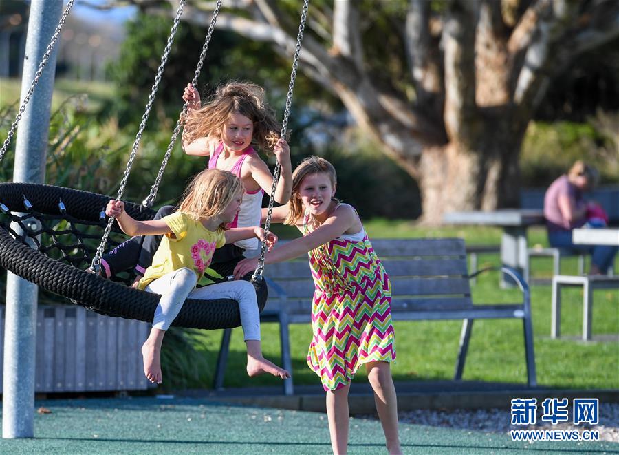 5月14日,孩子們在首都惠靈頓郊外公園的游樂場玩耍。當天是新西蘭從新冠疫情防控響應三級下調(diào)到二級的第一天,經(jīng)濟活動全面重啟,公園等公共設(shè)施首次重新開放,中小學生將于5月18日全面返校復課。新華社記者郭磊攝