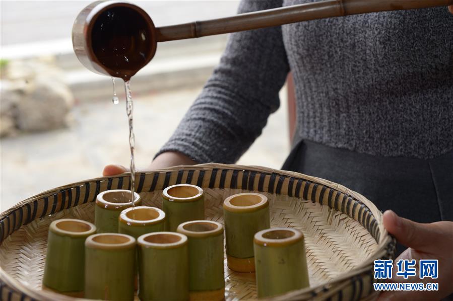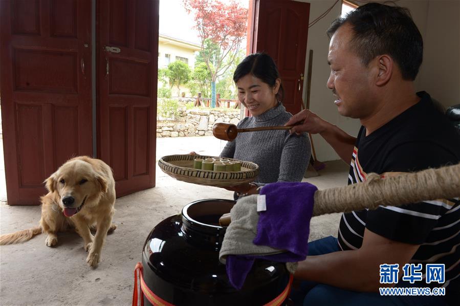 5月14日,在貴州省畢節(jié)市百里杜鵑管理區(qū)黃泥鄉(xiāng)龍?zhí)链逡患揖谱鞣唬迕駥?duì)玉米進(jìn)行發(fā)酵。貴州省畢節(jié)市百里杜鵑管理區(qū)黃泥鄉(xiāng)龍?zhí)链宓凝執(zhí)凉啪?,因?dú)特的古法釀酒技術(shù),口感獨(dú)特而遠(yuǎn)近聞名。全村有釀酒戶142戶,年產(chǎn)量達(dá)45萬多公斤,龍?zhí)凉啪七h(yuǎn)銷重慶、廣東、浙江等地,龍?zhí)凉啪埔殉蔀辇執(zhí)寥嗽鍪盏闹匾獊碓础P氯A社記者楊楹攝