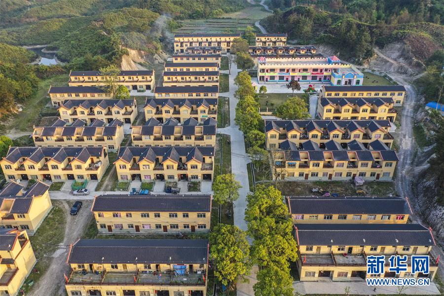 這是廣西南丹縣“千家瑤寨·萬(wàn)戶(hù)瑤鄉(xiāng)”里湖王尚易地扶貧搬遷安置點(diǎn)(4月28日攝,無(wú)人機(jī)照片)。新華社記者曹祎銘攝