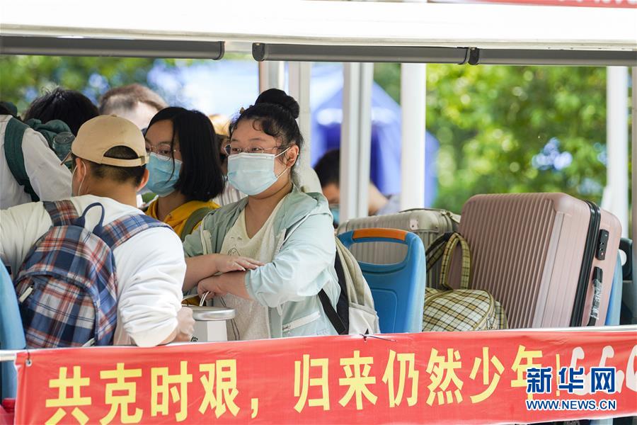 5月15日,在西南大學(xué)校園內(nèi),學(xué)生們搭乘校內(nèi)轉(zhuǎn)運車前往各自的宿舍。當日,重慶西南大學(xué)迎來疫情以來首批返校大學(xué)生。據(jù)介紹,按照疫情防控的需要,重慶市高校2020年春季學(xué)期從5月11日起按照“一校一策”原則,實行錯峰錯時分批次有序開學(xué)復(fù)課。新華社記者劉潺攝
