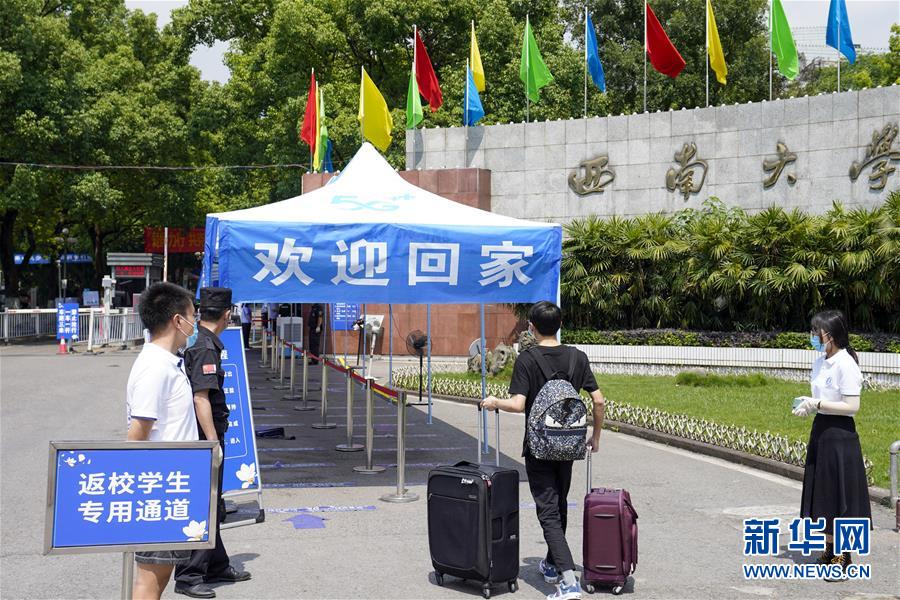 5月15日,在西南大學(xué)的返校學(xué)生專用通道前,學(xué)生按照工作人員和志愿者的引導(dǎo)有序進入校區(qū)。當日,重慶西南大學(xué)迎來疫情以來首批返校大學(xué)生。據(jù)介紹,按照疫情防控的需要,重慶市高校2020年春季學(xué)期從5月11日起按照“一校一策”原則,實行錯峰錯時分批次有序開學(xué)復(fù)課。新華社記者劉潺攝