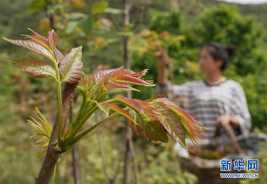 5月17日,秦皇島市撫寧區(qū)王家灣村的一位村民在自家香椿園采摘香椿芽。近年來,河北省秦皇島市撫寧區(qū)王家灣村村委會(huì)帶領(lǐng)村民在坡嶺荒地種植紅香椿樹1000多畝,綠化了荒坡荒地,增加了農(nóng)民收入。新華社記者楊世堯攝